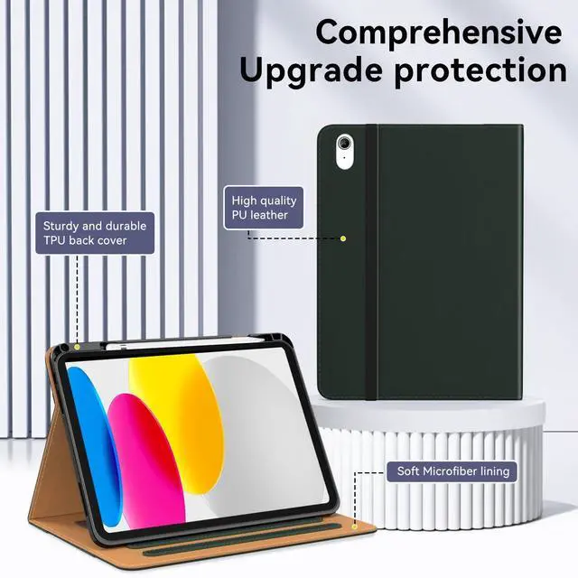 Easy to install & Super protective: This ipad 10th generation case is made of PU leather exterior, soft microfiber lining and durable TPU back shell, preventing scratches, shocks, drops and impacts and easy to install and remove