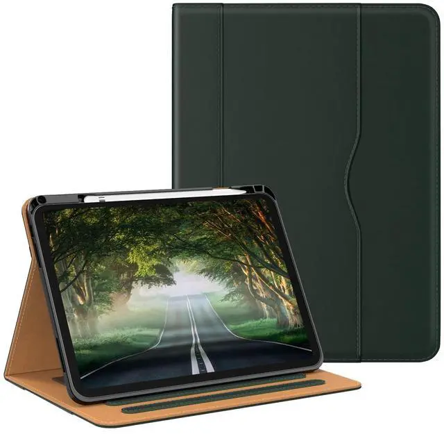 OKP Case for iPad 11-inch (A16) 2025 / 10th Generation 2022, for ipad 11th / 10th 10.9 inch with Multi-Angle Viewing PU Leather Stand Cover with Pencil Holder & Pocket, Auto Sleep/Wake, Dark Green