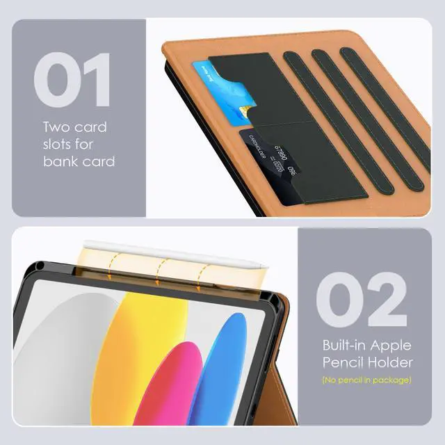 Built-in Pencil Holder: This 10th generation ipad case has a pencil holder slot that is compatible with the first generation Apple Pencil. The specially designed pen clip will hold your pen tightly and will not fall off easily
