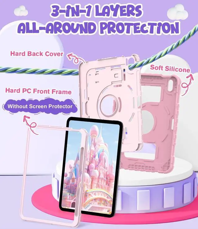 • Premium Protection: The OKP 11th/10th gen case specifically designed with children in mind, providing comprehensive safety protection; 3-in-1 Layer design combines a premium shockproof silicone outer layer with a hard PC cover, which is protects your iPad from scratches, accidental drops, bumps and impacts (Attention: WITHOUT built-in screen protector)