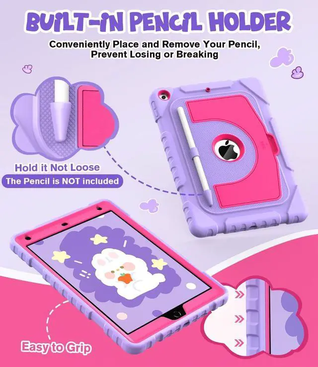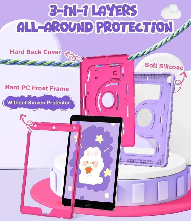 Precise Cutouts: All controls to easily access all ipad functions without taking your ipad 10.2 out of the case; Raised edges keep screen and camera lifted to prevent surface scratches; Also easy-to-grab bump design that is more friendly to kids and students ^^