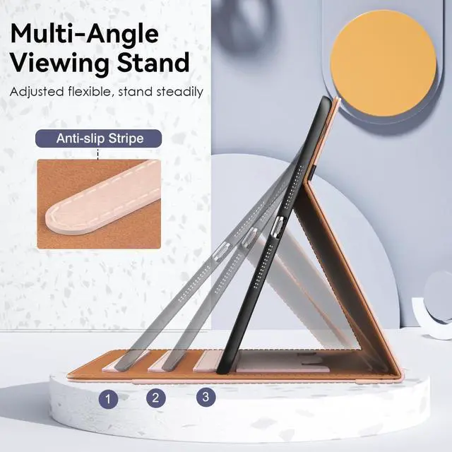 ^^ Multiple Viewing Angle: Three anti-slip strips keep case standing stably so you can type or watch easily. You also can adjust the viewing angle flexibly to meet your needs and free hands. Large Pocket and two card slots for bank card, notes, cash, paper, documents etc.