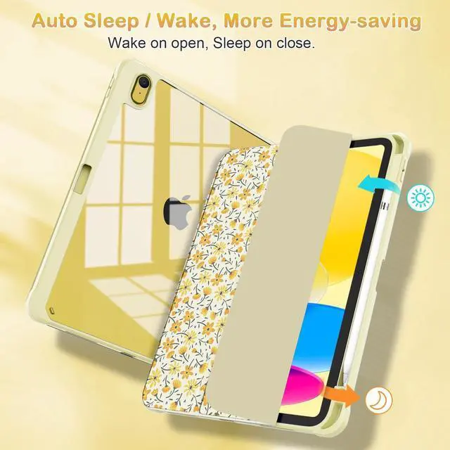 OKP Case for iPad 11th Generation 11-inch (A16) 2025, for 10.9'' iPad 10th Gen 2022, Slim Lightweight i Pad 11/10 th Gen Cover with Trifold Stand, Auto Wake/Sleep, Clear PC Back Shell, Yellow Flowers