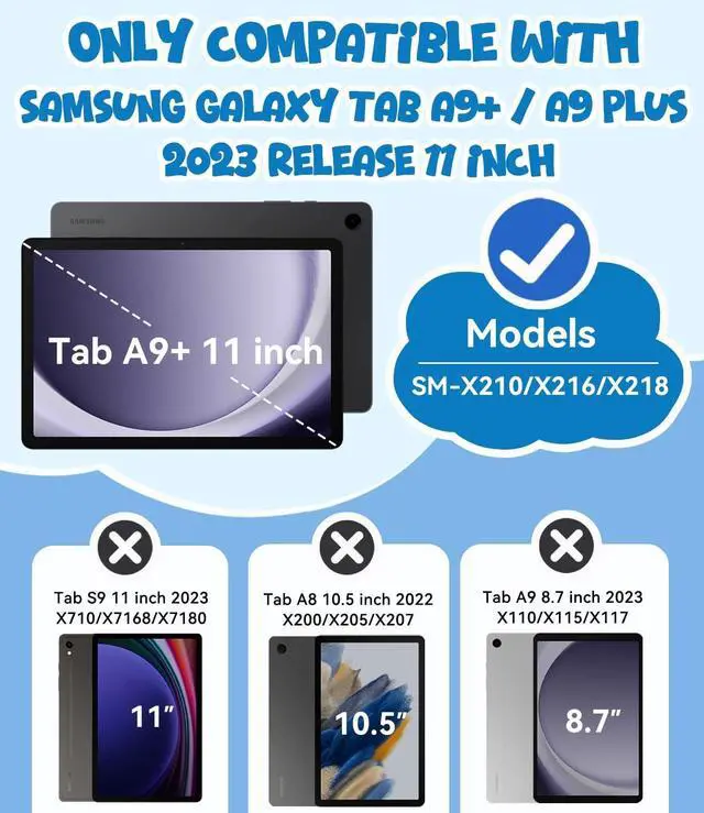 Compatible Model: The OKP 11 inch kids tablet case is fit New Samsung Galaxy Tab A9+/ A9 Plus 2023 (SM-X210/X216/X218) and Samsung Galaxy Tab A11 Plus 2025 (SM-X230/X236B/X235). Not compatible with any other devices.