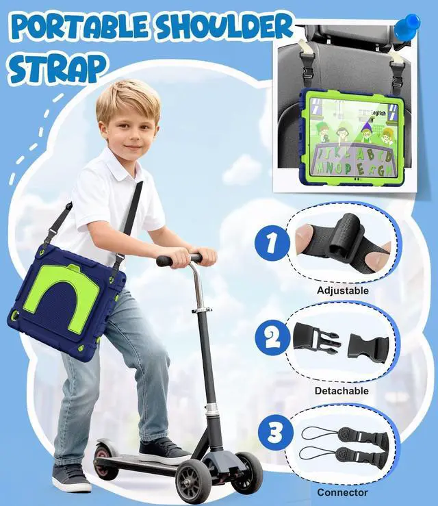 Adjustable Shoulder Strap: The portable shoulder strap is convenient to carry your galaxy tab A9+/ A11 plus everywhere, you can adjust the length of the shoulder strap as you want; you can even attach it to a car headrest for hands-free viewing in the back seat, making it ideal for work, study, and travel.
