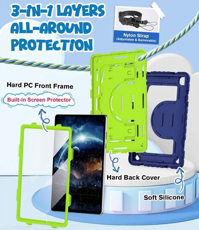 Premium Protection: The OKP tab A9 plus/ A11 plus case specifically designed with children in mind, providing comprehensive safety protection; 3-in-1 Layer design combines a premium shockproof silicone outer layer with a hard PC cover and a built-in transparent PET screen protector; which is protects your tablet from scratches, accidental drops, bumps and impacts. Detachable &
