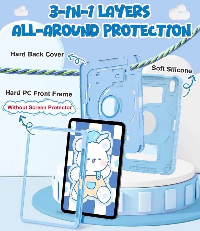 Precise Cutouts: All controls to easily access all ipad functions without taking your ipad 10th generation out of the case; Raised edges keep screen and camera lifted to prevent surface scratches; Also easy-to-grab bump design that is more friendly to kids and students ^^