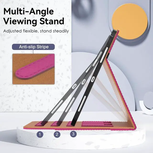 Multiple Viewing Angle: Three anti-slip strips not only can free your hands and give you a best viewing angle, but also can be adjusted flexible to keep stand steadily. Large Pocket and two card slots for bank card, notes, documents etc.