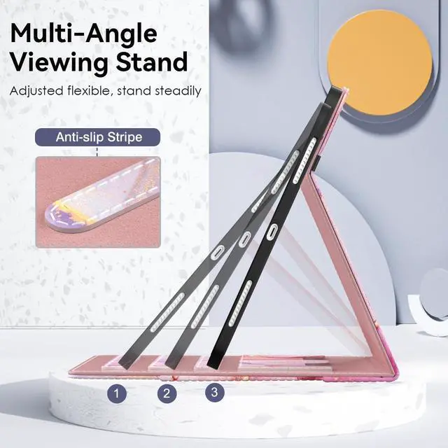 Multiple Viewing Angle: Three anti-slip strips not only can free your hands and give you a best viewing angle, but also can be adjusted flexible to keep stand steadily. Large Pocket and two card slots for bank card, notes, documents etc.