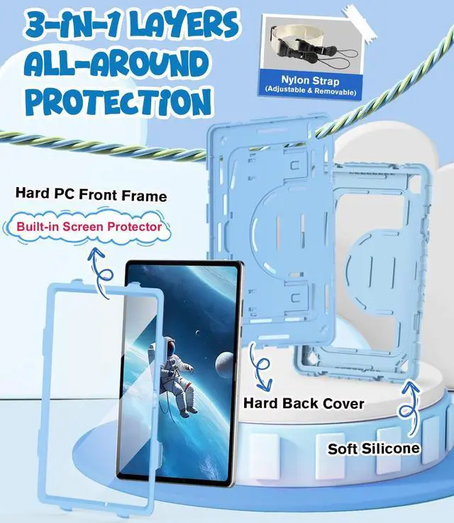 Premium Protection: The OKP tab A9 plus/ A11 plus case specifically designed with children in mind, providing comprehensive safety protection; 3-in-1 Layer design combines a premium shockproof silicone outer layer with a hard PC cover and a built-in transparent PET screen protector; which is protects your tablet from scratches, accidental drops, bumps and impacts ^^ Detachable &