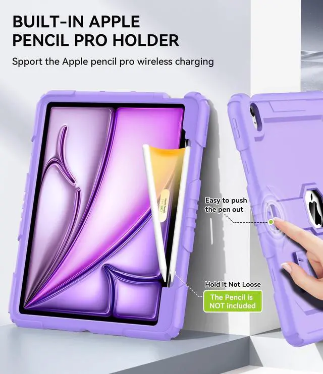 ^^ Built-in Pencil Holder: The OKP for iPad air 13-inch case is pair with Apple Pencil Pro/USB-C, which supports the Apple Pencil Pro wireless charging. But limited to the functionality of Apple Pencil USB-C itself, the case do not allows wirelss charging for it, only allows attaching itself to the side of case. Pencil is Not included ^^ Full