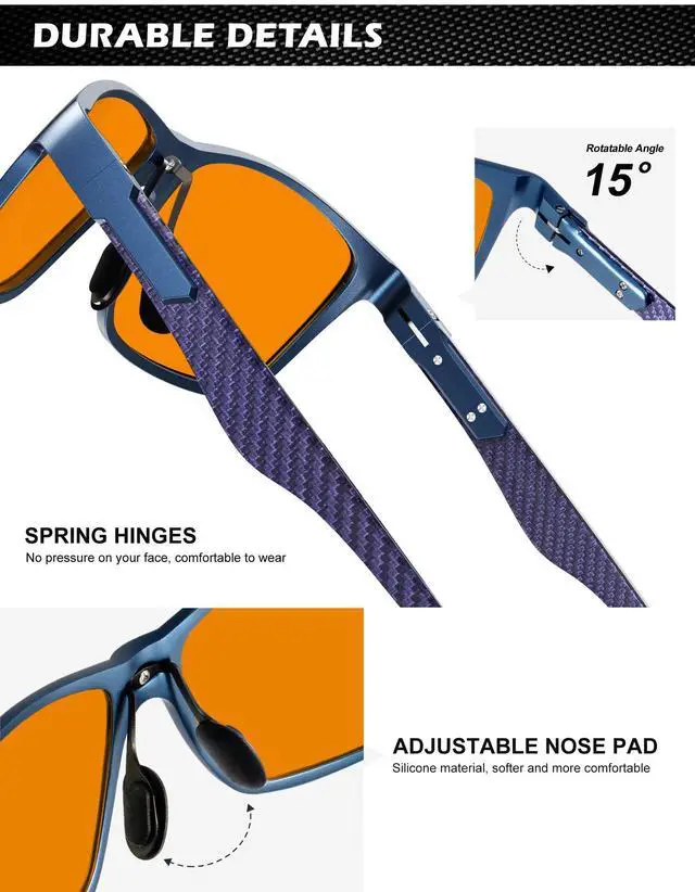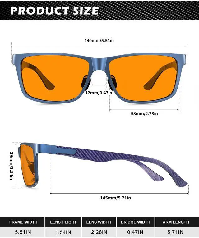 Premium Temple Material: With superior Al-Mg and carbon fiber composite temple, this type of blue light blocking glasses for men is ultra-light than pure metal frame, also more sturdy. No more worries about broken temples. As more suitable for anyone who often work or play games by the computer, do not miss this pair of practical and classic blue blocker glasses.