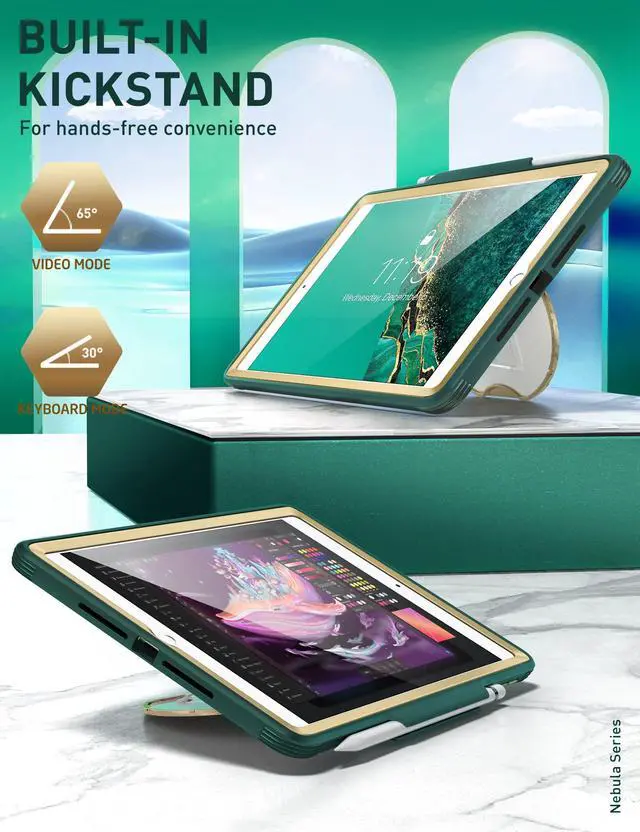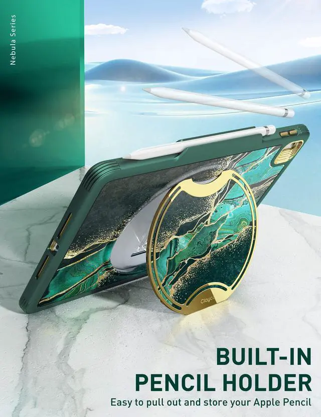 [(Built in Kickstand & Pencil Holder)] Convenient kickstand that slides out for typing, gaming and video watching at home or on the go. Pencil Holder provides a new assisting function, makes it easy to pull out and store your pencil (Apple Pencil is NOT included)
