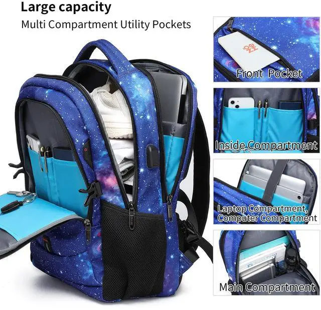COMPARTMENT CAPACITY & POCKETS:Separate laptop compartment fits 17/15/14/13 Inch Macbook/Laptop.Separate compartment Fits Maximum 9.7" iPad.Main compartment roomy for tech electronics accessories,3-5 days clothing,5 A4 Books.Front compartment with 2 Pockets for power Bank and Shaver,2 Pen pockets and key fob hook.Pocket for socks and gloves.Front hidden zipper pocket fits papers.2 mesh pockets for water bottle and compact umbrella.Strap pocket fits bus card and Metro Card,One glasses hold strip.