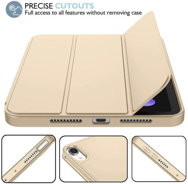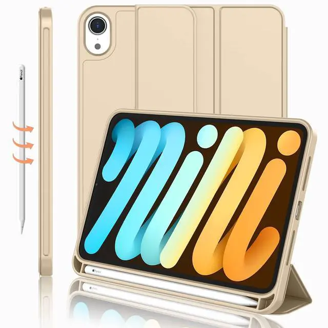 iMieet iPad Mini 7 Case 2024 (A17 Pro), iPad Mini 6 Case ( 8.3 -Inch, 2021 Model), iPad Mini 7th/6th Generation Case with Pencil Holder, Trifold Stand Smart Case with Soft TPU Back, Champagne Gold
