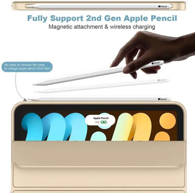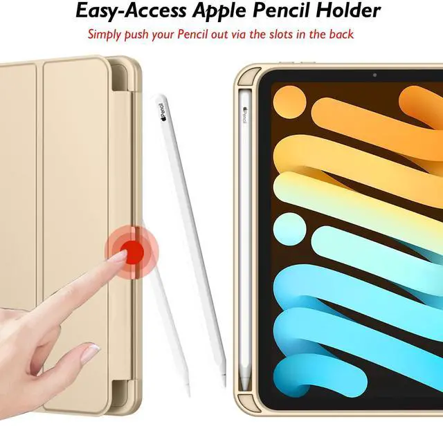 iMieet iPad Mini 7 Case 2024 (A17 Pro), iPad Mini 6 Case (8.3-Inch,2021 Model), iPad Mini 7th/6th Generation Case with Pencil Holder, Trifold Stand Smart Case with Soft TPU Back,Champagne Gold