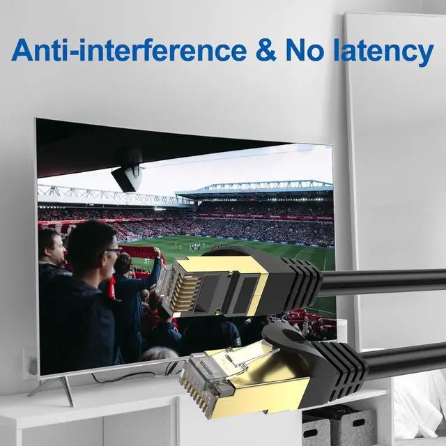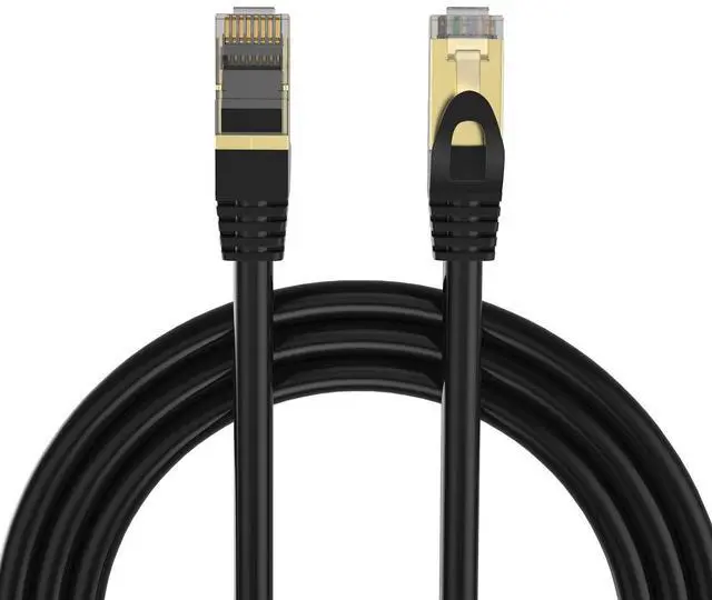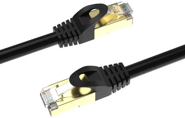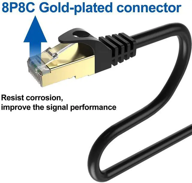 -Shielded CAT8 Cable with 24K Gold Plated Connectors and 99.99 % Oxygen Free Copper Conductor.