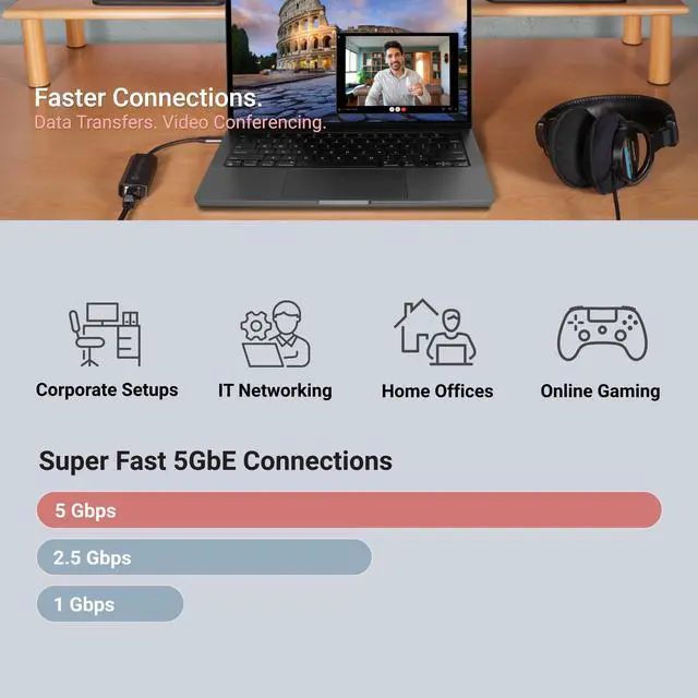 Adds 5 Gigabit Ethernet Connectivity: Adds a 5 Gigabit Ethernet (RJ45) port to your computer.