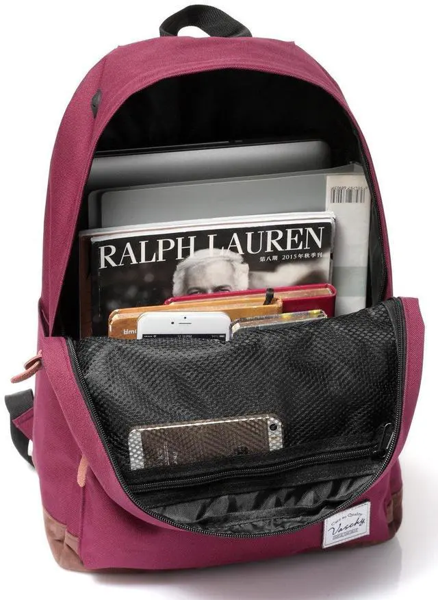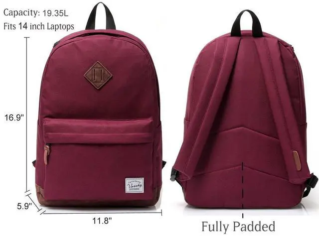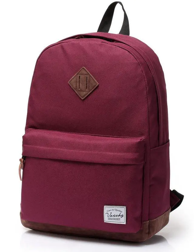 VASCHY Unisex Classic Lightweight Water-resistant Campus School Backpack for Women Travel BackPack Burgundy Fits 15.6I nch Laptop