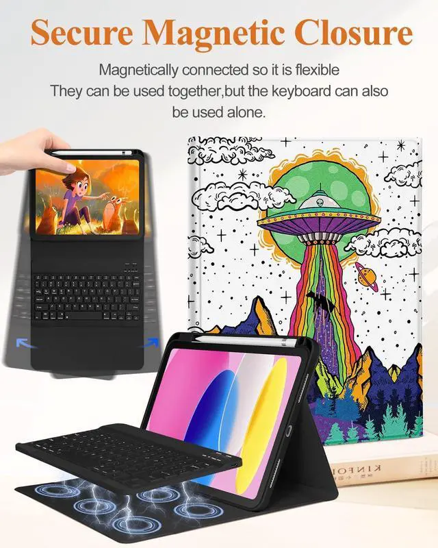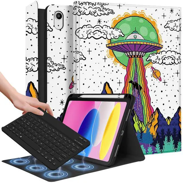 Wazzasoft for iPad 10th Generation Case with Keyboard - for iPad A16 Cases Pencil Holder 10.9 Inch Cover Men Boys Cute Cool Fun Alien Unique Design Funda for Apple Tablet 10th/11th gen