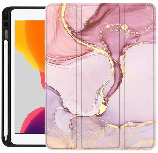 Operate your tablet hands-free using this marble SaharaCase Folio case for Apple iPad 10.2. The raised edges help guard the lens and screen against scratches and shattering, while the ergonomic open button design and cutouts allow unhindered port access. This SaharaCase Folio case features a triple-hardened material for durability.