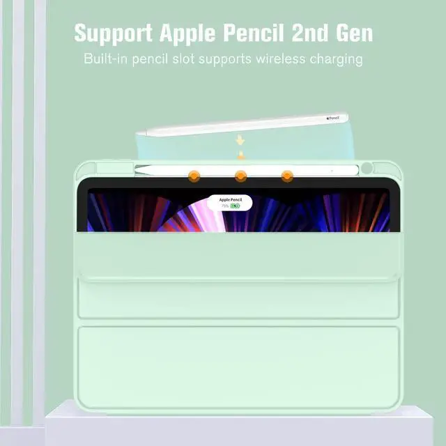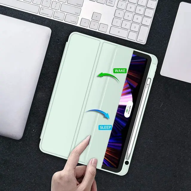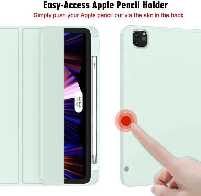 ZryXal New iPad Pro 11 Inch Case 2022(4th Gen)/2021(3rd Gen)/2020(2nd Gen) with Pencil Holder,Smart iPad Case [Support Touch ID and Auto Wake/Sleep] with Auto 2nd Gen Pencil Charging (Pale Green)
