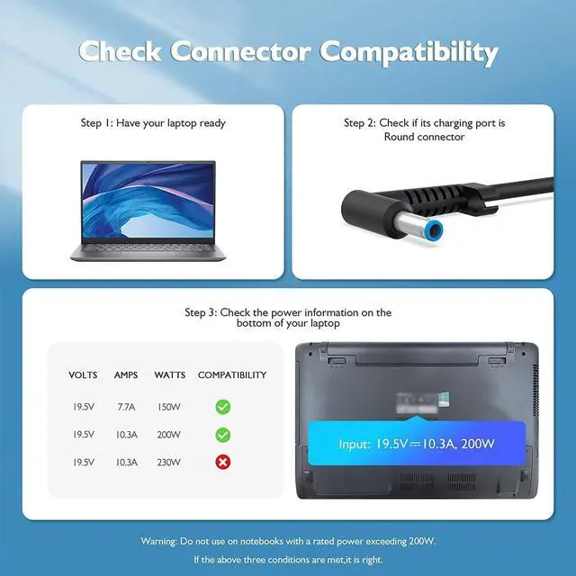 Power Product Type :Fit for HP Laptop Charger Output Max: 19.5V ~ 10.3A 200W (19.5V 6.9A 135W ,19.5V ~ 7.7A 150W also compatible) Input Volt Range: 100 - 240V /50 - 60Hz, Connector size:4.5*3.0mm Blue Connector power supply adaptor. UL Safety Tested. ) !!! Please Note !!!(NOT FIT Connecter size:7.4mm*5.0mm and Power 19.5V ~ 11.8A 230W ) / HP Charger AC Adapter Power Cord Replacement