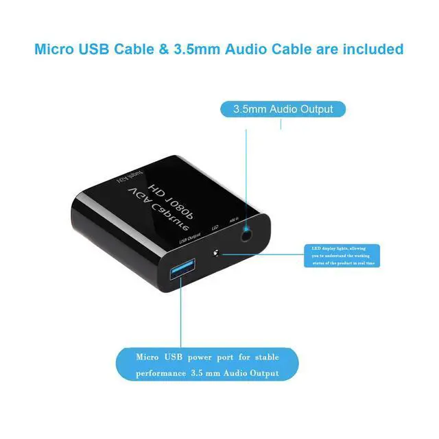 purpose): Can be used as a video capture card for displays (Photographic purposes): Can be used as a video capture function required for location photography (Fashionable design): Lightweight and portable, convenient for you to carry aroundProduct