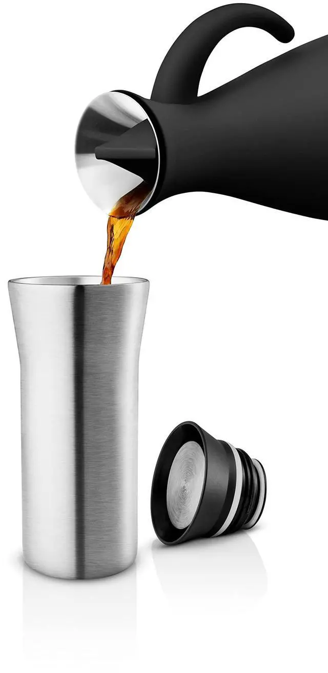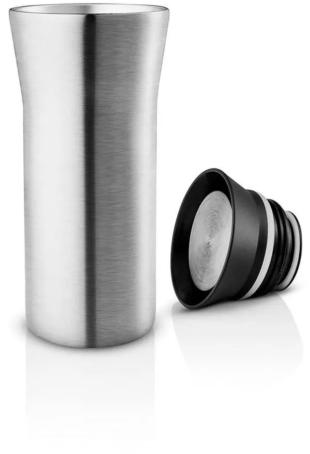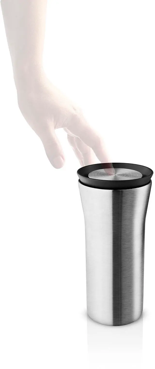 Eva Solo ^^ City To Go Cup recycled 12oz ^^ Practical, double-walled thermo cup for easy and simple one-hand operation click-lid allows drinking from all sides ^^ Steel/Black