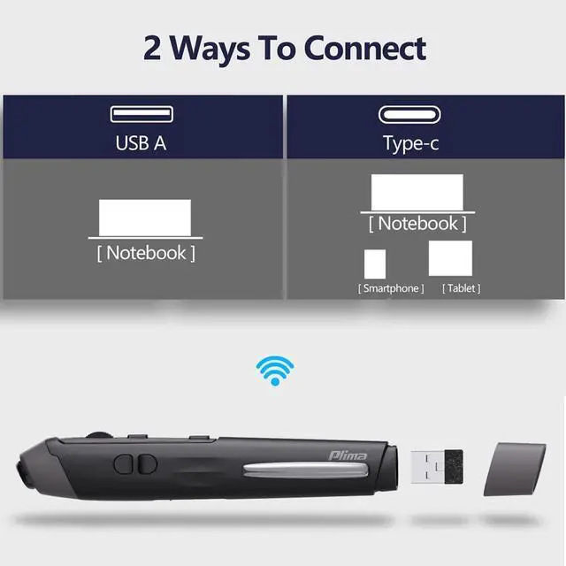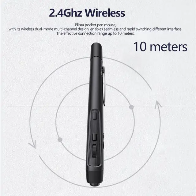 ^^ 2.4G WirelessPlima computer Pen Mouse features a 2.4G wireless design for smooth, interference-free operation. It offers an effective connection range of up to 10 meters, enhancing user flexibility and convenience. ^^ Long-lasting Power Plima Computer Mouse Pen offers up to 30 days of continuous use on a single charge, and it features a battery level indicator for real-time power monitoring, ensuring you stay informed about its power status at all times.