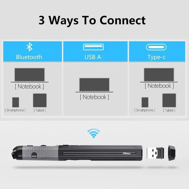 Say Goodbye to Wrist Pain (Ergonomic Evolution) Stop squeezing a bulky traditional mouse. The Plima Pen Mouse features a natural "pen-grip" posture that aligns your wrist in a neutral position. It is the ultimate solution for professionals suffering from Carpal Tunnel, RSI, or long-term wrist fatigue. ^^ Seamless Dual-Mode Connectivity Experience ultimate freedom with stable Bluetooth 5.0 and 2.4GH z Wireless technology. Toggle effortlessly between your laptop, tablet, and smartphone with a single click. No drivers neededjust plug and play for instant productivity. ^^ Precision at Your Fingertips (Adjustable 1600 DPI) Whether you're highlighting cells in Excel or sketching a quick idea, our high-precision optical sensor with 3-level adjustable DPI (800/1200/1600) ensures pixel-perfect control.