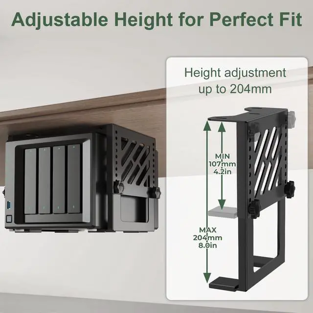 204mm vertical adjustment range accommodates most NAS and PC devices and other devices
