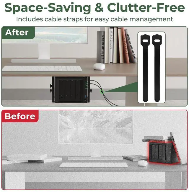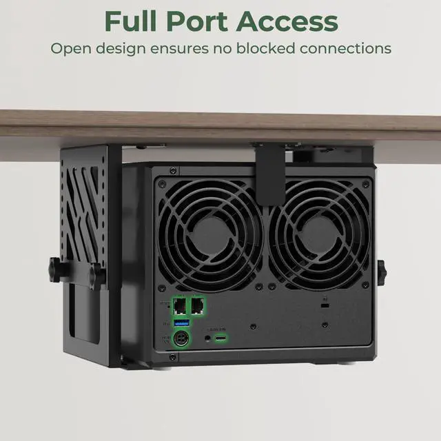 This under desk mount provides a dedicated solution for organizing your NAS (Network Attached Storage), PC, CPU, SFF PC (Small Form Factor), Xbox Series X and other devices.