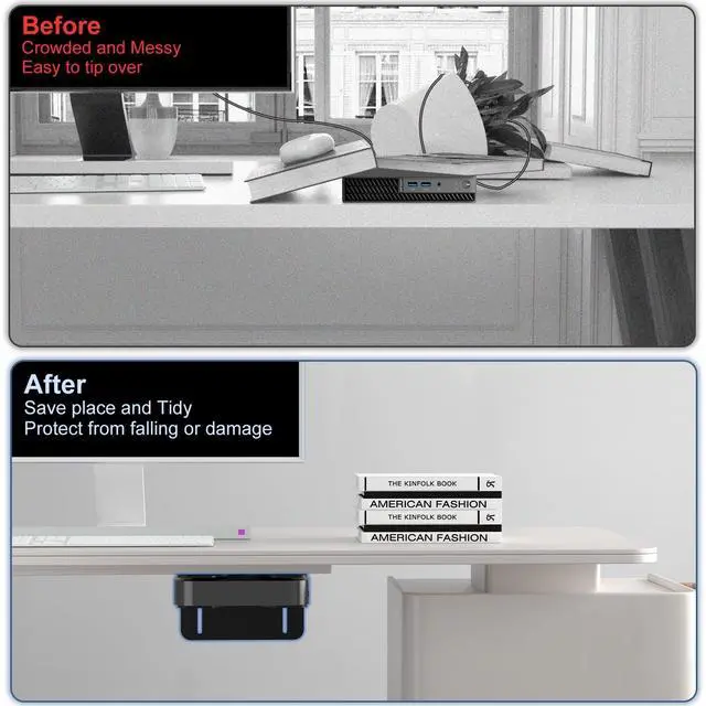 Its built to last, providing long-term stability for your setup. ^^ Space-Saving Design---Maximize your workspace! With the ability to mount your mini PC on the wall, under the desk, or behind your monitor, you can free up valuable desk space for a neat and organized work or gaming area. Its also perfect for small apartments, home offices, or any setup where space is limited. ^^ Easy Setup, Custom Fit--- Whether you want to hide your mini PC out of sight, or keep it within easy reach, this mount offers the flexibility to attach it anywhere.