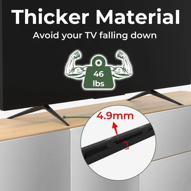 Screws are included, so you can get your TV back on its feet quickly and hassle-free. Perfect for renters or anyone who wants a simple fix. ^^ Non-Slip Pads for Extra Security--Each leg for Vizio TV comes with non-slip feet to protect surfaces and hold your TV in place. A smart choice for smooth furniture tops or slippery surfaces, offering added safety. ^^ Space-Saving Stand Design-- These legs for Vizio TV stand are slim and compact, giving your TV support without taking up extra space. Ideal for small apartments, dorms, or entertainment centers with limited room.