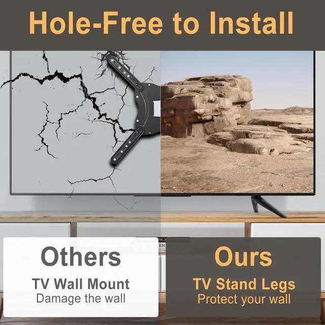 Drill Holes: The TV feet is used under the TV, don't need to damage your wall. 3.