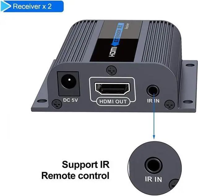 IR Remote Control-- Support 20~60Hz IR pass back, Allow source device to recognize remote commands; You can control the HDMI source device at a secondary location with the included IR cables that forward command over a CAT6/7/8 cable for convenience