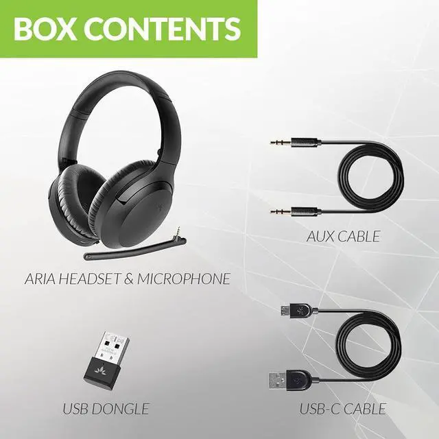 • [Easy Plug & Go] When the Aria 90B is used on your PC, theres no need to go through the complex Bluetooth pairing procedure; simply plug the adapter into your PCs USB port, power on the headphones and you should be good to go. It works on Windows, Mac, Chromebook and any USB port that outputs audio.[Extended Mic] The Avantree 90B Headset comes with a long detachable microphone thats placed near your mouth. Due to the close proximity, the microphone will be able to pick up your voice more clearly while effectively eliminating the excessive noise around you, no matter where youre at.[Noise Cancellation] Like all other Aria Series headphones, the 90B features advanced built-in Active Noise Cancellation technology. When used in environments filled with low frequency ambient noises such as Air Travel, Subway and Bus Commutes, the ANC technology can block the noise out, giving you more peace & quietness.