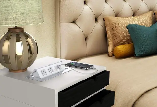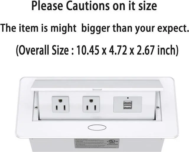 Pop-up Power Strip: High quality and look professional elegant. when installed in a meeting or conference table. The pop-up feature allows you to utilize all of the desk space when the outlets are not. Recessed PowerStripSimply press to click open, then press down to hide away nearly flush with the surface when not in use. Easily mounts to any surface and is ideal for shared workstations, conference tables, and community charging stations.