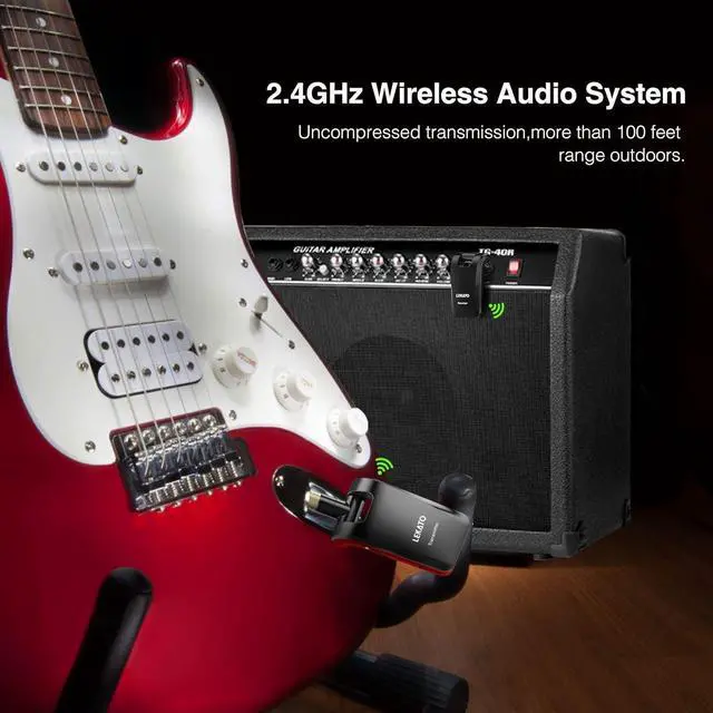 • Clear Signal Transmission 2.4GHz wireless guitar system, 24bit / 48KHz stereo lossless digital transmission sampling rate, <12 ms latency, more than 100 feet effective range, low latency, no signal loss, low noise, professional sound quality.