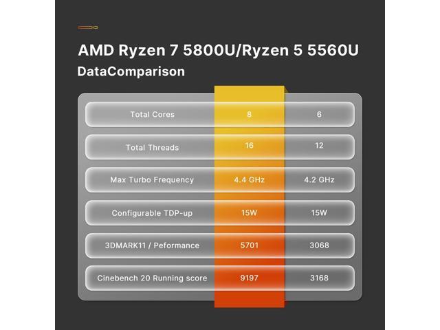 RYZEN 7 5800U PROCESSORBOSGAME mini computers is equipped with Ryzen 7 5800U processor (8C/16T, 16M Cache, up to 4.4GHz). Compared with Ryzen 5(5600U/5500U), P4 PRO MINI PC 5800U CPU performance +35%, more powerful performance and smoother running.