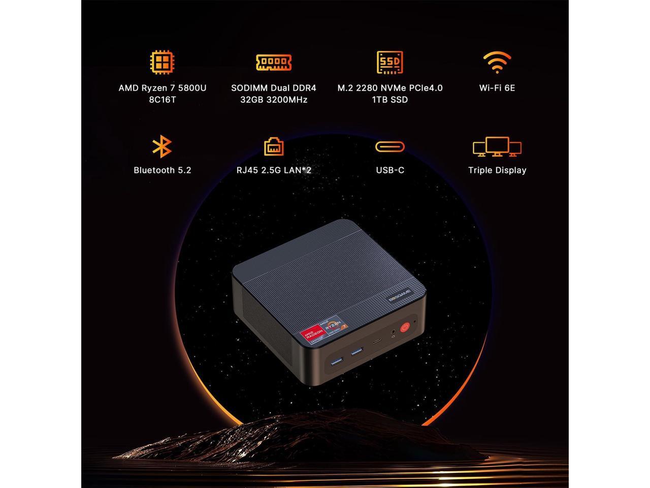 Mini PC Gaming [Dual LAN], Ryzen 7 5800U Mini PC Windows 11 Pro 32GB DDR4 1TB SSD Mini Computers (up to 4.4Ghz), 4K Triple Display Mini Desktop BT5.2/WiFi 6/Dual Channel