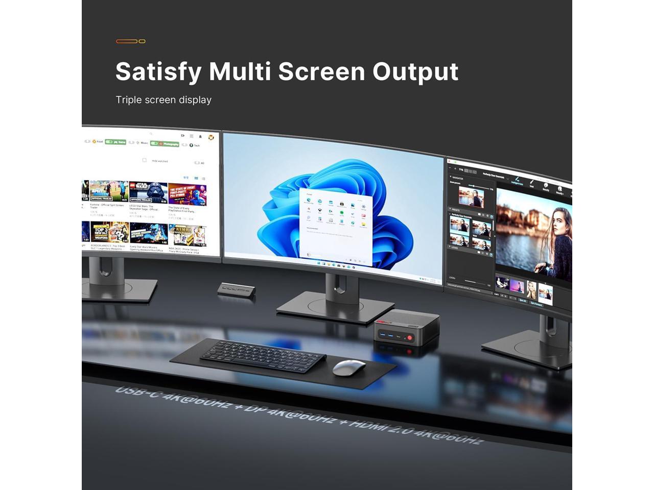 4K TRIPLE DISPLAY OUTPUTSMini gaming pc office supports triple display output with HDMI, DisplayPort and Type-C ports. The GPU adopts Radeon Graphics (8 GPU cores), the clock speed is 2000MHz, supports ultra-realistic 4K visual effects, which can provide incredible clarity and maximum work efficiency.