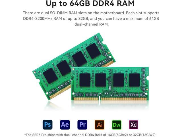 16GB RAM & 500GB PCIe3.0 SSD The mini computers is equipped 16GB 3200MHz DDR4 RAM and 500GB M.2 PCIe3.0 2280 SSD.(With two memory slots that can be upgraded to 64GB).Mini pc 16gb ram reads up to 3000Mb/s,makes your entire system speedy and responsive.You also have the option to expand your storage to a whopping 2TB with a 2.5-inch HDD/SSD,and with these,this mini pc offers fast startup and loading of applications, as well as a large amount of storage space for your various files.