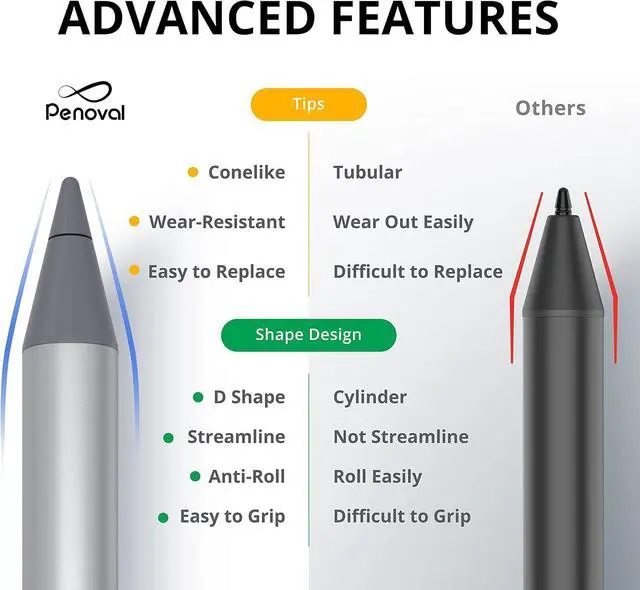 STURDY CONE-LIKE TIP - Our unique cone-like design solves an annoying problem for most users unstable writing. Our stylus pen is also wear-resistant and easy to replace if you break it. Overall, it is a more streamlined design for users.
