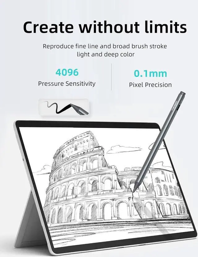 Tilt Function & Palm Rejection: Metapen M2 can accurately reproduce both the finest lines and the broadest brush strokes. Tilt the tip up to ±55° to artistically shade your drawings. No fatigue on the wrist with 2 hands on the screen, and no breaking points when writing or drawing either