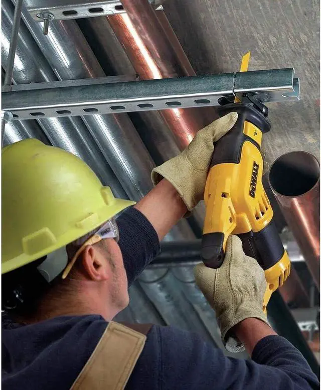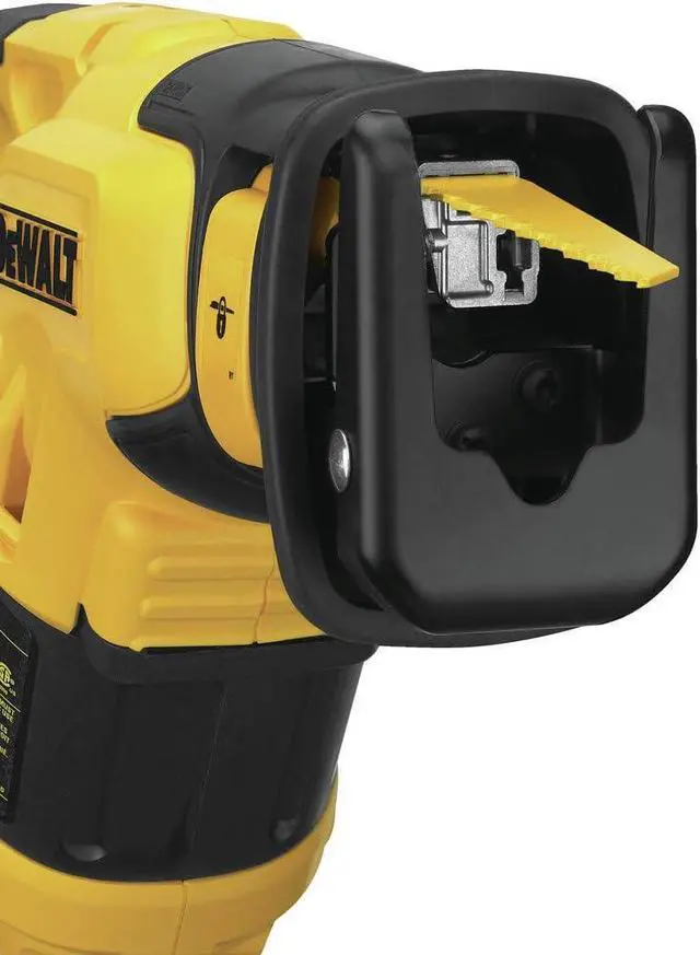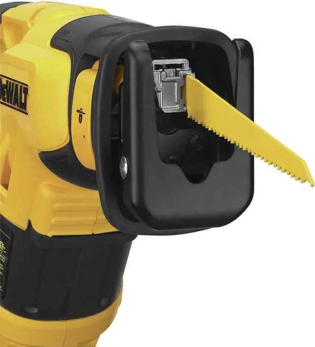 The DWE357 Compact Reciprocating Saw has a powerful 12 Amp motor with a variable speed trigger to deliver up to 3, 000 strokes per minute with a 1- 1/8-inch stroke length for fast and efficient cutting in heavy-duty applications. Compact in length at 14.5 -inch and lightweight it can make cuts in confined spaces like between studs. DEWALT Reciprocating Saw also features a keyless, lever-action 4-position blade clamp for quick and easy blade changes in four directions for a variety of applications including flush cutting and a bright LED light to illuminate dark work areas.