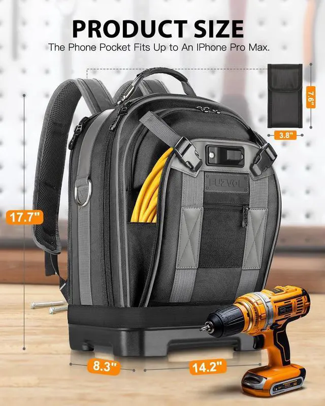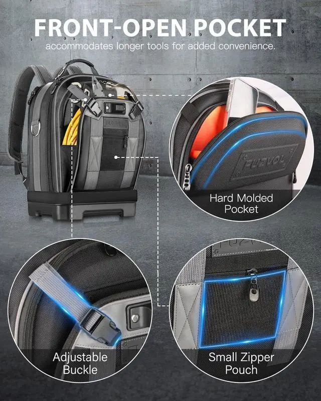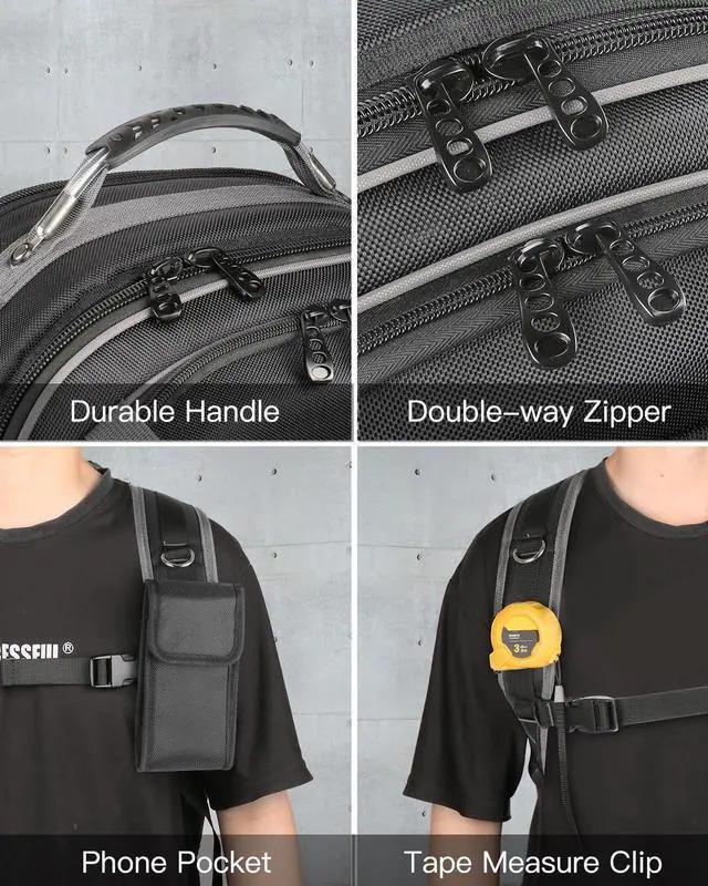 Removable Organizer Pocket: If you need to transport larger tools, simply remove the inner tool compartment to free up additional interior space