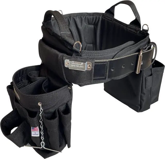 Ultimate Electrician's MAX Combo with Comfort Back Support Tool Belt, Leather Belt Buckle, Heavy Duty Tool Belt, Black, (Large 33-36 Inch Waist), Tool Belt Made in USA