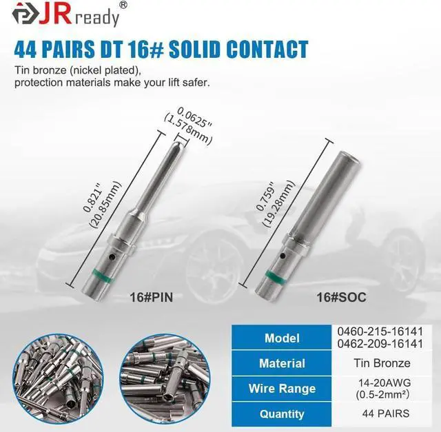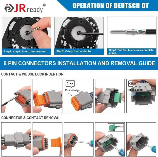 Pin DT Connector Versatility: JRready connectors offer reliability and performance widely used in truck, bus, off-highway, construction, agriculture, mining, emergency vehicles, forestry, recreational marine, motorcycle on the engine or transmission, under the hood, on engine controls, solenoid interfaces or in the cab.